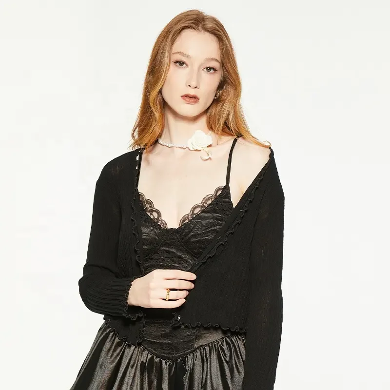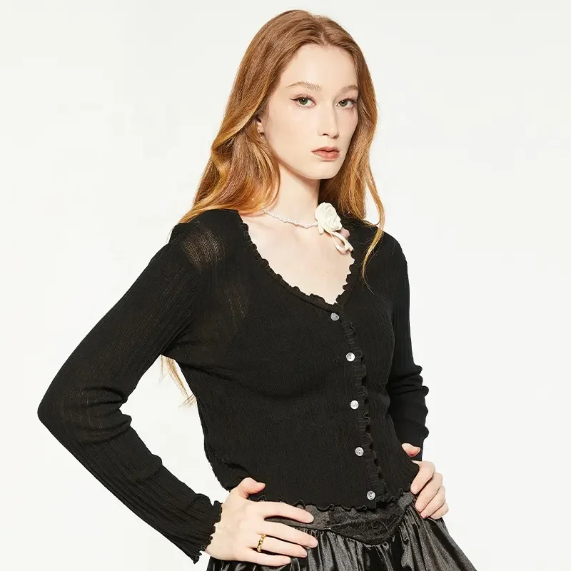 Women's Breathable Solid Pattern Knitted V-neck Casual Spring Cardigans with Full Sleeve and Single Button OEM Service COTTON